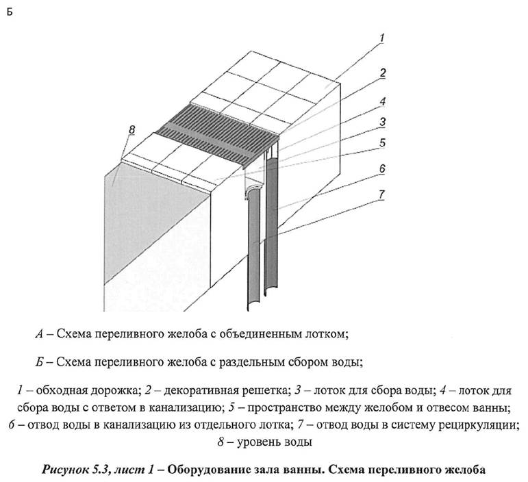 5.8 Борта и решетку физкультурно-оздоровительных бассейнов рекомендуется проектировать как для спортивных бассейнов (рисунок 5.2).