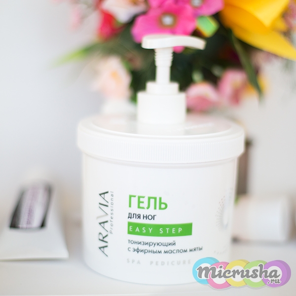 - Гель для ног от ARAVIA Professional Easy step с тонизирующим эфирным маслом мяты. Мои впечатления: много-много мятного геля. Всегда стоит на прикроватной тумбочке и является моим must have средством по уходу за ногами. Благодаря экстракту мяты, рутина и конского каштана гель быстро снимает усталость, тонизирует и питает кожу, не оставляет следов и быстро впитывается. Недостатком является большая банка, ее нельзя взять с собой в отпуск или поездку, но как домашнее средство меня устраивает полностью. Цена – всего 700 рублей за 550мл.