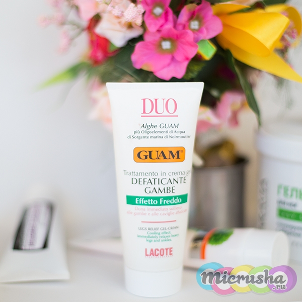 - Гель DUO GUAM Effetto Freddo – тоже хороший охлаждающий крем от известной итальянской марки. Хорошо охлаждает, удобная упаковка, приятный запах. Из недостатков – недешевый, около 2000р за 100мл.