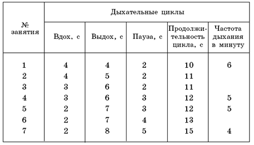 Научитесь делать быстрые и короткие циклы вдохов. Выполняйте эти циклы так, словно накачиваете шину, постарайтесь сохранять одинаковый темп. Тренировать движения и вдохи начинайте со счета 2, 4 и 8. Темп – 60-72 вдоха в минуту (частота пульса). Вдохи должны быть громче выдохов. Обычная норма задания – 1000– 1200 вдохов, можно и больше – 2 тыс. вдохов. Паузы между дозами вдохов – 1-3 с.