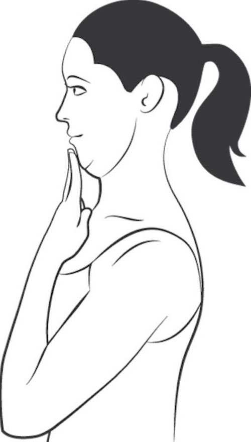 Нажимать необходимо таким образом, чтобы образовался второй подбородок. Чем сильнее делать нажим, тем лучше. Это упражнение можно выполнять даже тогда, когда просто сидят в машине. Количество повторов со временем следует довести до 15-20.