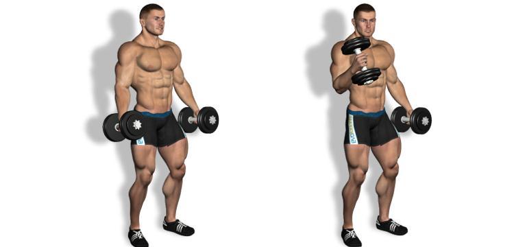 Самое важное и эффективное упражнение по подъёму для проработки рук называется сгибание бицепса. Встаньте ровно, расположив ваши руки по бокам, и держите баклажки в каждой руке. Ваши плечи должны стоять на месте и не двигаться во время всего движения руками.