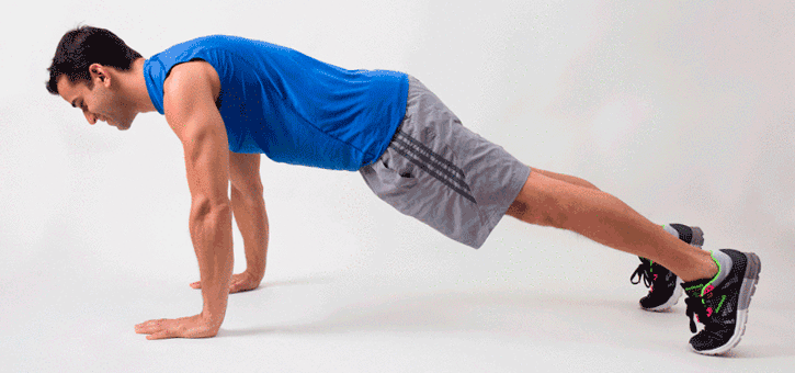 Сделайте 8 взрывных отжиманий, и без отдыха сразу к следующему упражнению.