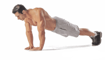 На выдохе – подъем на всю высоту рук, на вдохе – возврат в исходное положение. Если такое отжимание не получается, начните отжиматься с колен, тогда в пол упираются ладони и колени, а стопы смотрят вверх.