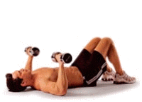 Наличие обычных гантелей позволит вам существенно разнообразить программу тренировочных занятий. Наиболее универсальным упражнением является следующее: заняв исходное положение лежа на спине, ноги согните в коленях, руки с гантелями вытяните вверх. Затем, на вдохе, медленно опускайте руки до касания локтями пола. Старайтесь не спешить, выполняйте данное упражнение в плавном, равномерном темпе. Существенно разнообразить подобные упражнения с гантелями может позволить обычная складная атлетическая скамья, купить которую реально в любом спортивном магазине.