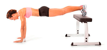 - Скамья. Положение аналогично тому, которое принимается при отжимании, только руки согнуты в локтях. Такую позу нужно удерживать столько времени, насколько хватит сил.