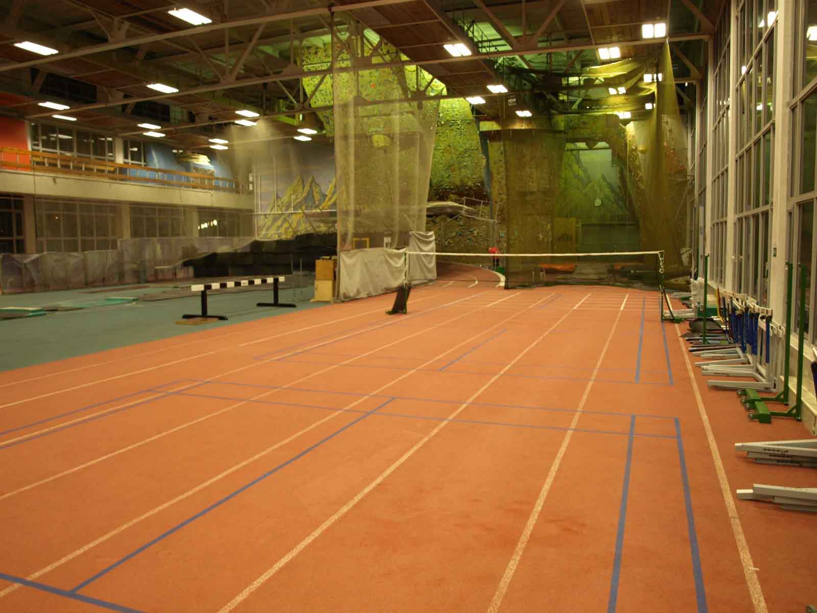 До этого помещение реставрировали в начале 2000-х, открыли в 2005-м. Состояние зала было хорошим, новый тартан оказался качественным, но напрочь отсутствовала система вентиляции. Бегали всегда с открытыми окнами, в том числе, зимой. Для атлетов предлагалось две дорожи по кругу + узкая внутренняя дорожка для разминки, три прямых для бега на дистанцию 50 м. К моменту закрытия беговое полотно сильно приуныло, местами стояли заплатки. Внутри кольца размещалась тартановая голубая дорожка для прыжков в длину. Можно было пользоваться барьерами, матами, шведскими стенками, турниками, тумбами для прыжков. На цокольном этаже располагался тренажерный зал, где стояли старые, но надежные тренажеры, штанга, короткий гриф.