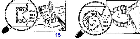 Все эти описанные лыковые и жердевые сети являются лишь элементом конструкции ловушки для рыбы, предназначенным для того, чтобы остановить и направить рыбу в ее ловчую часть. Ловчая часть это загон, садок, карман, и прочее, собственно и является сутью примитивных сетей. В центре построенной тем или иным способом сети оставляется узкий проход, ниже которого, за ловушкой из тех же расправленных на жердях сетей или кольев, сооружается небольшой садок-загон треугольной, квадратной или любой другой формы. Вход имеет форму воронки, углубленной примерно на треть внутрь садка. Попавшая в ловушку крупная рыба не может отыскать путь назад, скапливаясь в тупиковых карманах, и рыбаку остается добыть ее с помощью или отловить руками (рис. 15) . Иногда вход в загон выполняется в виде постепенно сужающейся спирали. Рыба движется вдоль забора, попадает в спираль, и по ней — в садок (рис. 15) .