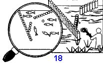 В широких реках, где перекрыть весь поток затруднительно, можно сооружать ловушки для рыбы возле одного из берегов. А чтобы рыба пошла в нужном направлении, встать посреди свободного потока и всеми возможными способами создавать шум (рис. 18).