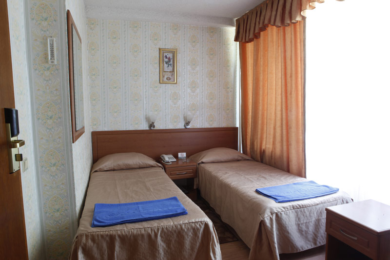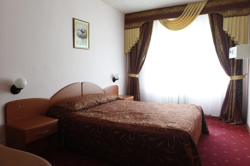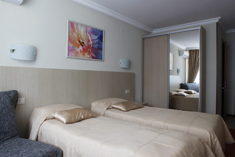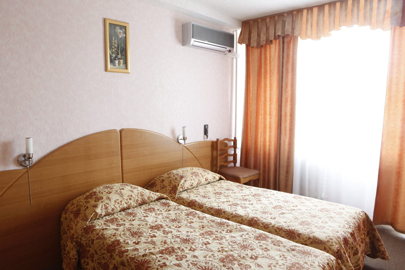 - 2-х местный стандартный номер без балкона/с балконом. В номерах: душ/ванна, туалет, ТВ, фен (по запросу), мини-бар, сплит-система, телефон, электрочайник, сейф, Wi-Fi.