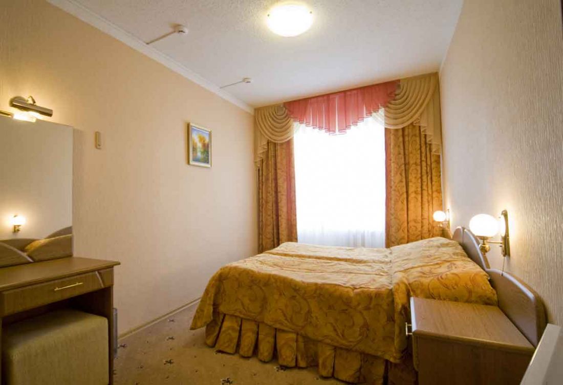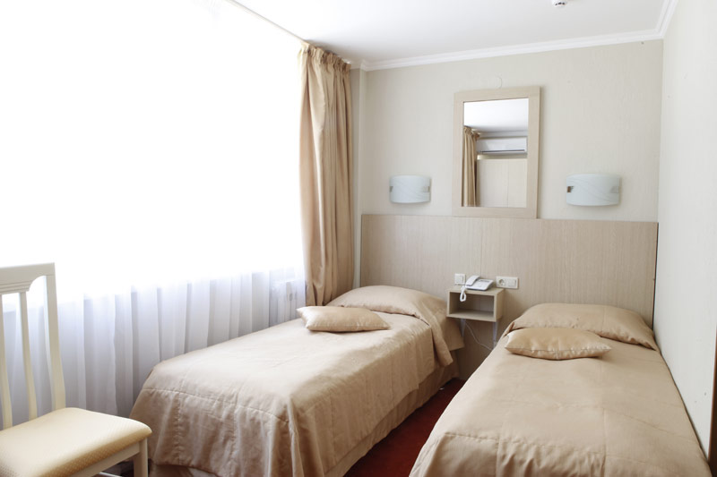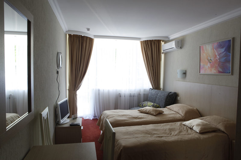 - 2-х местный стандартный номер с балконом/без балкона. В номерах: душ/ванна, туалет, ТВ, фен (по запросу), мини-бар, сплит-система, телефон, электрочайник, сейф, Wi-Fi.