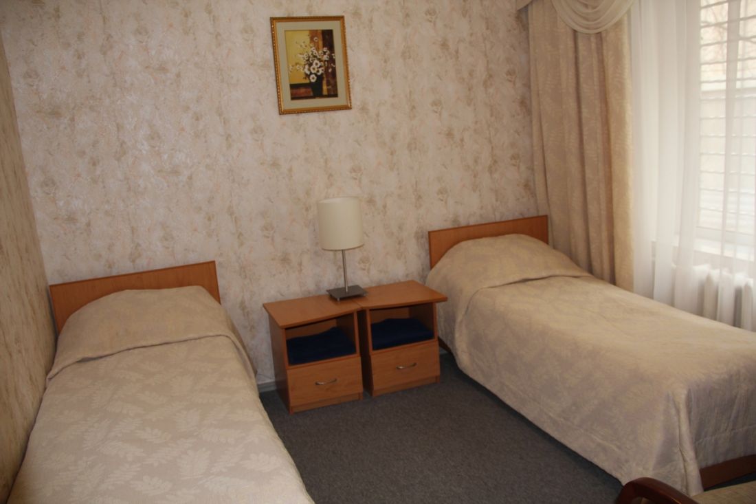 Однокомнатные двухместные номера «1 категории» с лоджией и без лоджии с ванной комнатой или душевой кабиной. Площадь номеров 11-14 кв.м. В номере с лоджией предусмотрено дополнительное место. В номере без лоджии дополнительное место не предусмотрено.