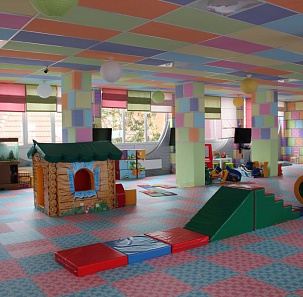 - детская игровая комната с воспитателем, детская площадка, паровозик