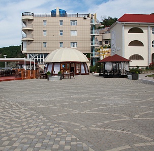 Прекрасный широкий галечный пляж, огромная ухоженная территория комплекса и интересные анимационные программы круглогодично радуют взрослых и маленьких гостей. К услугам гостей: кафе, бары, ресторан «Орбита», ночной клуб «Экстрим», «Домик лесника»,