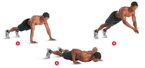 - плиометрические отжимания (во время подъема тела руки отрываются от пола и подбрасывают корпус вверх).
