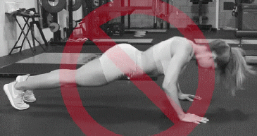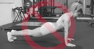 Таз опущен вниз, поясница изогнута, нарушена прямая линия тела. Такое выполнение упражнение может спровоцировать боль в спине и даже травму.