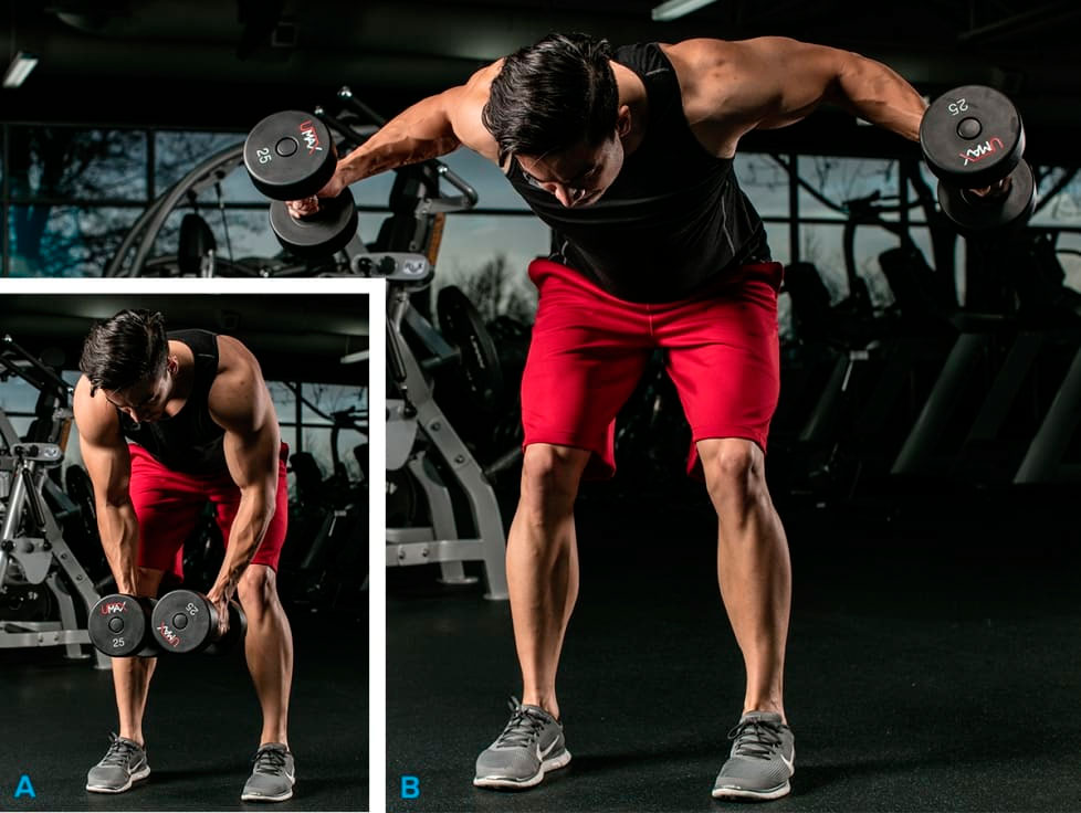 Не видно мышцы, значит, не надо их качать? Неправильно. Задний пучок дельтовидной мышцы – это не просто какая-то мелочевка, но и важное звено для профилактики травм. Жим лежа, тяги к поясу, становые тяги и даже приседания становятся более безопасными, когда задние дельты хорошо развиты. Кроме того, плечевой пояс выглядит более массивным и гармоничным, если они накачаны. А осанка – более привлекательной. Развитые задние пучки дельтовидных помогают развернуть плечи и обезопасить шейный отдел позвоночника от перегрузок во время обычной сидячей работы. Разведение гантелей в наклоне – движение, развивающее эту часть дельт и улучшающее осанку. Как правильно его делать?