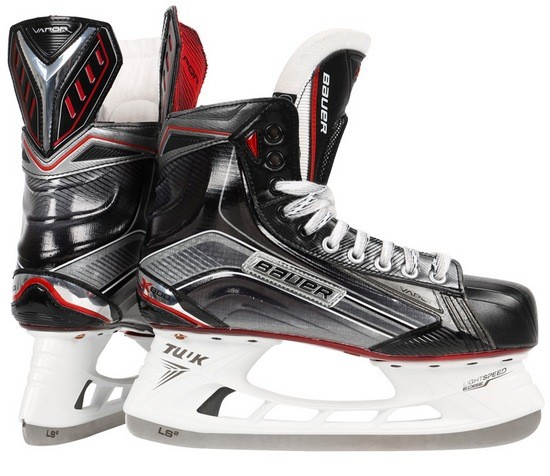 1. Bauer Vapor X500. Очень популярной и прекрасной по своим рабочим характеристикам является профессиональная и относительно недорогая модель Bauer Vapor X500. Ее стоимость — около десяти тысяч рублей. Эти коньки идеально созданы для быстрой и стремительной езды. Их особенности обусловлены их характеристиками. Во-первых, это стандартная посадка в зоне для пальцев и скошенная посадка типа V в зоне лодыжки и пятки. Это позволяет игрокам ускоряться и поворачивать в этих коньках очень стремительно. Во-вторых, это состав верхней и нижних частей этих коньков. Верхняя часть: конструкция Quarter Package — нейлоновый материал с термоформованным дизайном X-rib, подкладка — гидрофобная микрофибра, заита лодыжки представлена подушками для лодыжки из анатомического пеноматериала, язык анатомической формы (из двух частей, из войлока, 40 унций, оснащен защитой плюсны), стелька из материала EVA, формованного для комфорта, термоформуемая верхняя часть конька, поддержка пятки — защищенная патентом интегрированная анатомическая поддержка пятки/лодыжки. Нижняя часть: подошва (прозрачный интегрированный TPU), держатель для лезвия (TUUK LIGHTSPEED EDGE), лезвие (из нержавеющей стали TUUK Super). Данные коньки рассчитаны на полноту ноги D и EE.