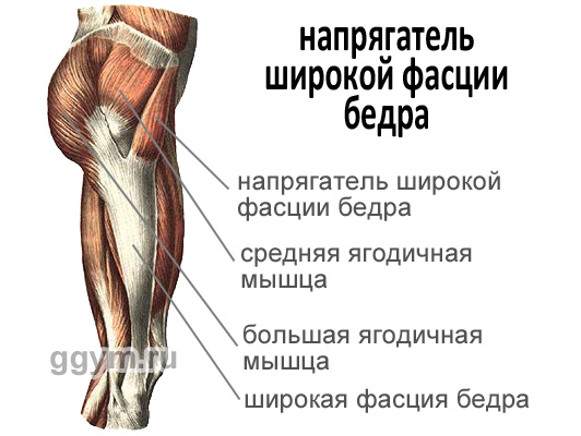 M. tensor fascia latae активно задействован при ходьбе, беге, выполнении упражнений на одной ноге.