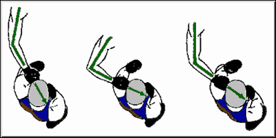 Малый угол сгибания в локтевом суставе дает возможность для применения бокового удара на дальней дистанции. Большой угол сгибания - для применения на ближней дистанции. Средний, между малым и большим, угол сгибания - для применения на средней дистанции.