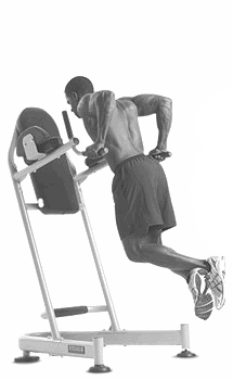 - Отжимания на брусьях с отягощением. Вариант для атлетов со здоровыми плечами: отжимайтесь от параллельных брусьев, надев пояс с отягощением.
