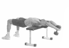 - С гантелями в руках лягте на скамью.