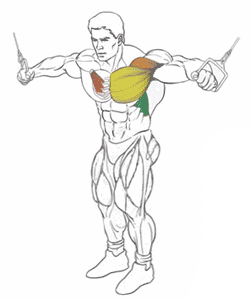 Это эффективное упражнение, чтобы изолировать грудные мышцы после базовых упражнений. Кабели допускают непрерывное напряжение мышц на протяжении всей амплитуды движения. Используйте его последним в день тренировки груди, для того, чтобы добить мышцы до отказа.