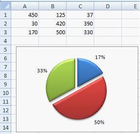 Диапазон ячеек, по значениям которых была построена диаграмма: 1) A3:C3 2) C1:C3 3) A1:C3 4) A1:C1 Правильный ответ – 1.